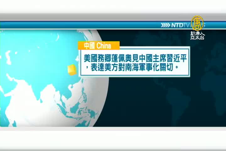 美國務卿蓬佩奧見中國主席習近平,表達美方對南海軍事化關切。