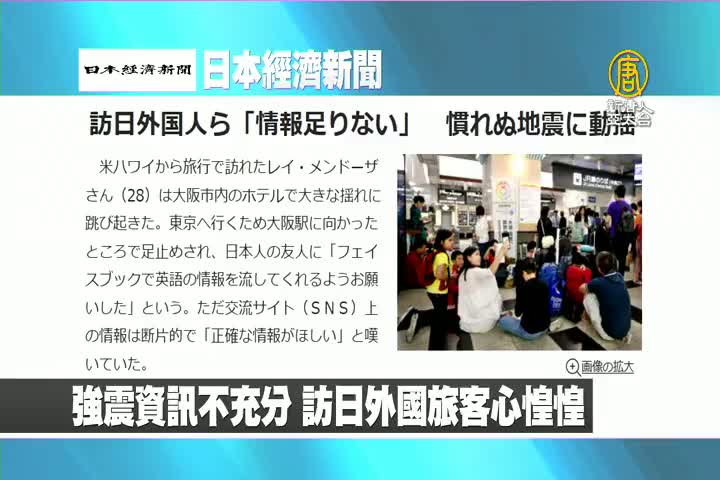 【新唐人亞太台 2018 年 06 月 19 日訊】來看到日本經濟新聞報導:日本大阪強震資訊不充分,訪日外國旅客心不安。