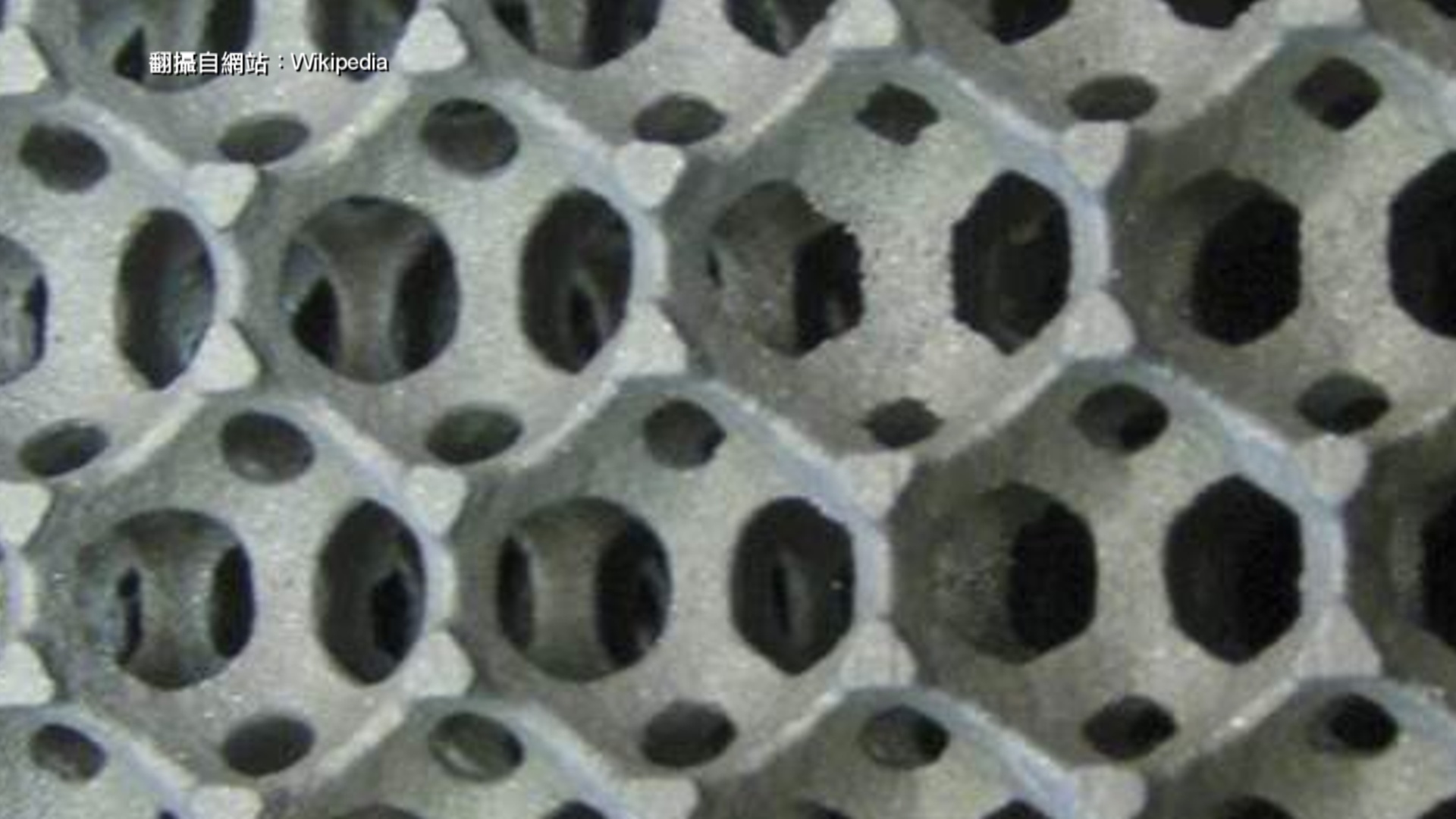 CMF是一種「金屬泡沫」,像海綿 或者像 瑞士奶酪一樣,表面有不少的孔洞,這也讓它的重量比一般金屬輕 很多。