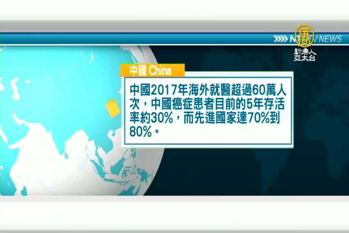 中國2017年海外就醫超過60萬人次,中國癌症患者目前的5年存活率約30%,而先進國家達70%到80%。
