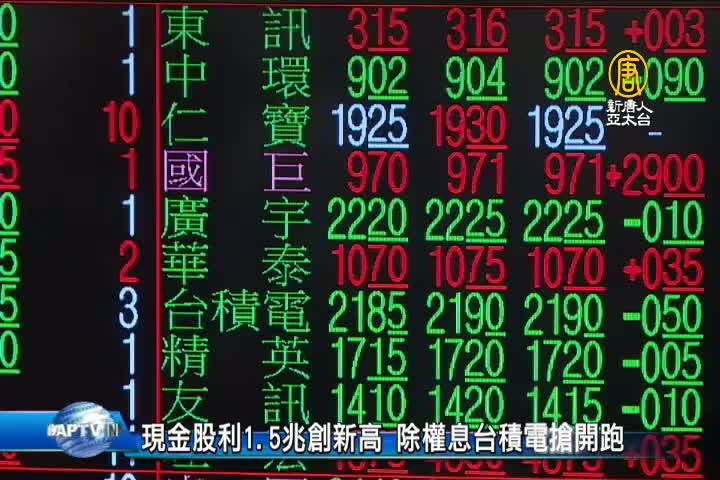【新唐人亞太台 2018 年 06 月 25 日訊】台股迎來年度重頭戲,台積電今(25)日引領除息,總計發放2074億現金股利,不過今天台積電表現不如預期,股價呈現「貼息」走勢,盤中最高來到220.5元,台股也蒸發70餘點。不過分析師指出,半導體基本面依舊強勁,隨著股息入袋,也會帶動台股指數表現。