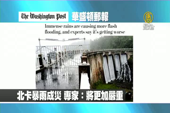 【新唐人亞太台 2018 年 06 月 26 日訊】首先來看到美國華盛頓郵報報導:美國北卡羅萊納州暴雨成災,有專家指出,情勢將會越來越嚴重。