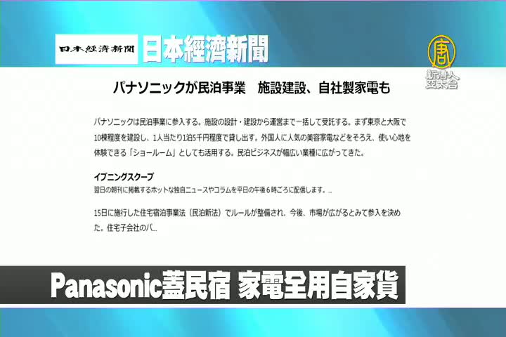 【新唐人亞太台 2018 年 06 月 26 日訊】來看到日本經濟新聞報導:日本大廠Panasonic跨足旅遊業蓋民宿,家電全部採用自家產品。