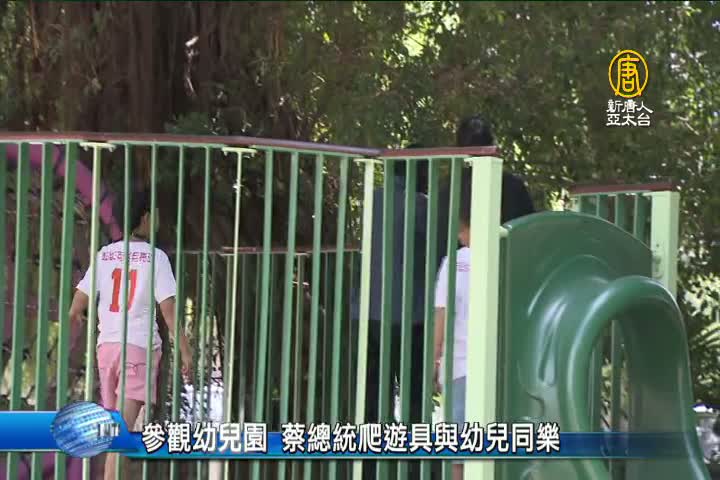 【新唐人亞太台 2018 年 06 月 28 日訊】歡迎回來。總統蔡英文,今天到南海實驗幼兒園,參加小朋友的繪本發表會,在小朋友帶著她參觀遊樂場時,還跟著爬上遊樂器材,差點就要從溜滑梯滑下來,展現童心未泯一面!