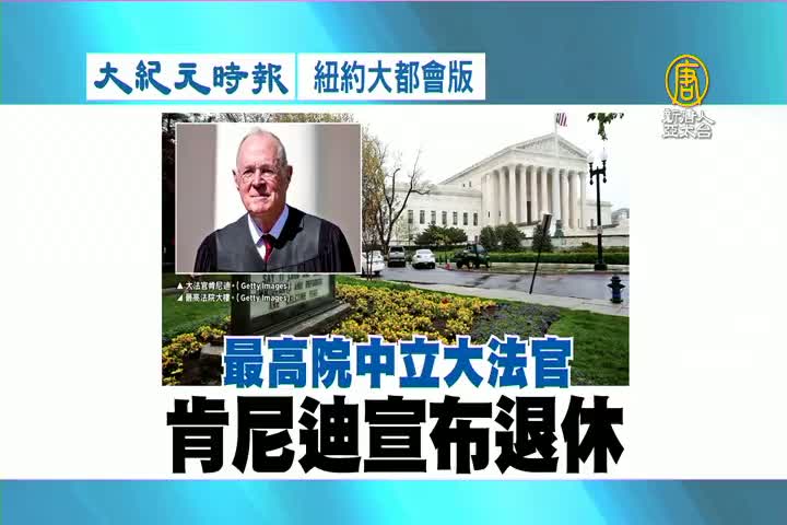【新唐人亞太台 2018 年 06 月 29 日訊】接著看到大紀元時報紐約大都會版報導:美國最高法院大法官肯尼迪宣布退休。
