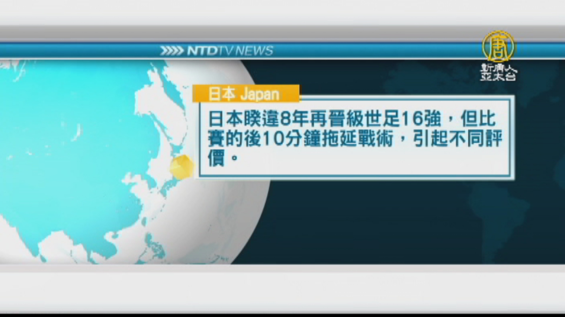 【新唐人亞太台 2018 年 06 月 29 日訊】日本睽違8年再晉級世足16強,但比賽的後10分鐘拖延戰術,引起不同評價。