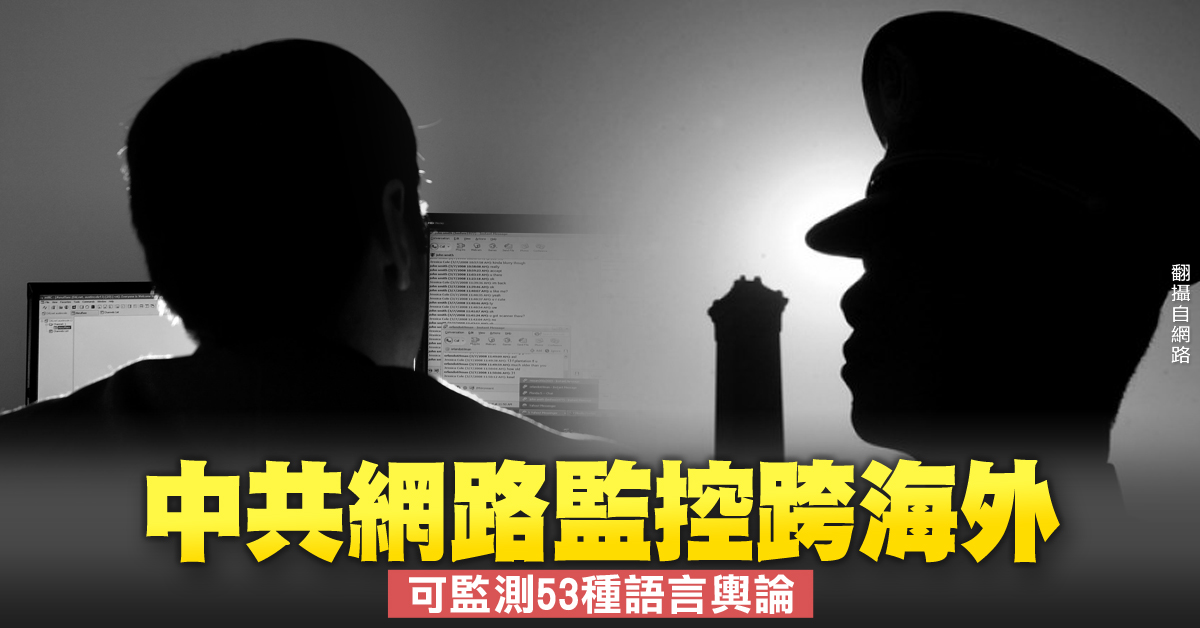 中共網路監控已從本土防火牆內翻到牆外,並滲透到世界各網站。外媒報導,中國政府部門已採用一款監測軟體,可監測港澳台等境外8000多個「涉敏」網站,甚至可採集53種語言輿論資訊。