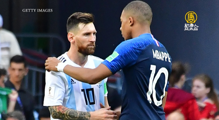 【新唐人亞太台 2018 年 07 月 01 日訊】世足16強賽事開踢,阿根廷以及葡萄牙雙雙遭到淘汰,也代表著兩位超級球星--阿根廷的梅西與葡萄牙的C羅,本屆世足之旅告終。不過法國新星崛起,年僅19歲的姆巴佩(Kylian Mbappe),對陣阿根廷,在四分鐘內一連踢進兩球,讓他一戰成名。