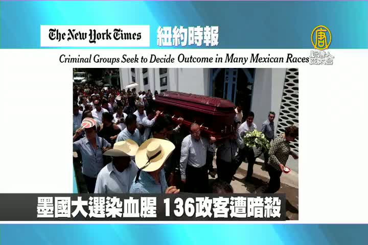 【新唐人亞太台 2018 年 07 月 02 日訊】首先來看到美國紐約時報報導:墨西哥本屆大選,至少136名政客遭犯罪集團暗殺。