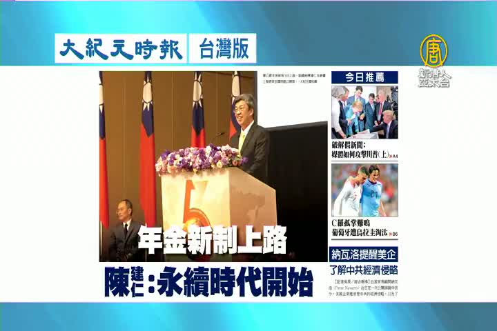 【新唐人亞太台 2018 年 07 月 02 日訊】繼續看到大紀元時報台灣版報導:軍公教年金新制上路,副總統陳建仁表示,永續時代已經展開。