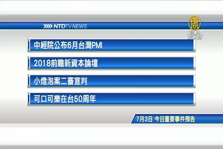【新唐人亞太台 2018 年 07 月 03 日訊】接著看到,今天,7月3日,星期二 ,有哪些重要活動。首先是,中經院公布6月台灣採購經理人指數;2018前瞻新資本論壇;小燈泡案二審宣判;以及「可口可樂」在台50周年記者會。