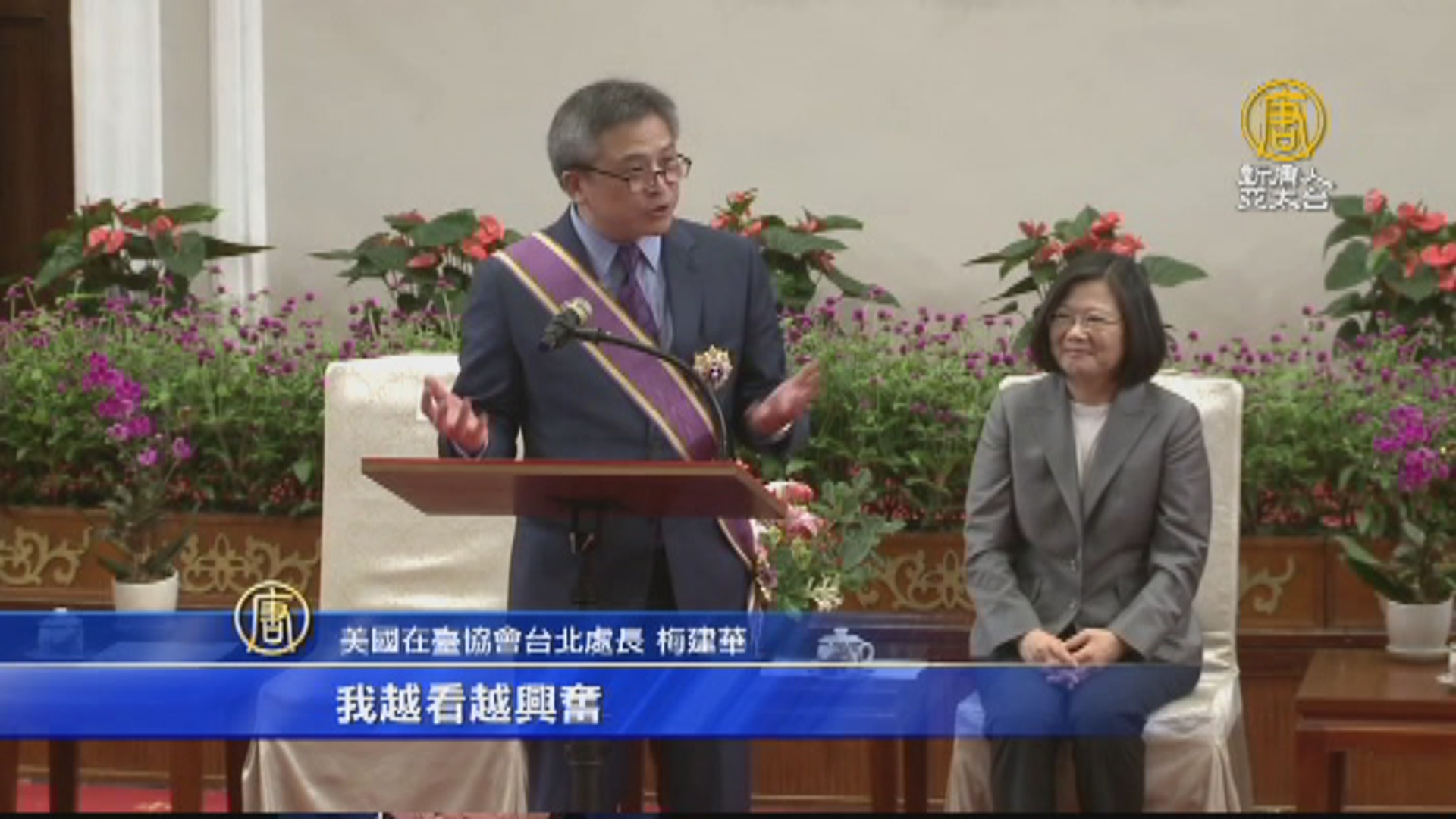 【新唐人亞太台 2018 年 07 月 03 日訊】美國在臺協會AIT台北處長梅建華即將交棒卸任,中華民國總統蔡英文(3日)頒贈勳章,強調美國是台灣最好的朋友,台灣永遠是梅建華第二個家。