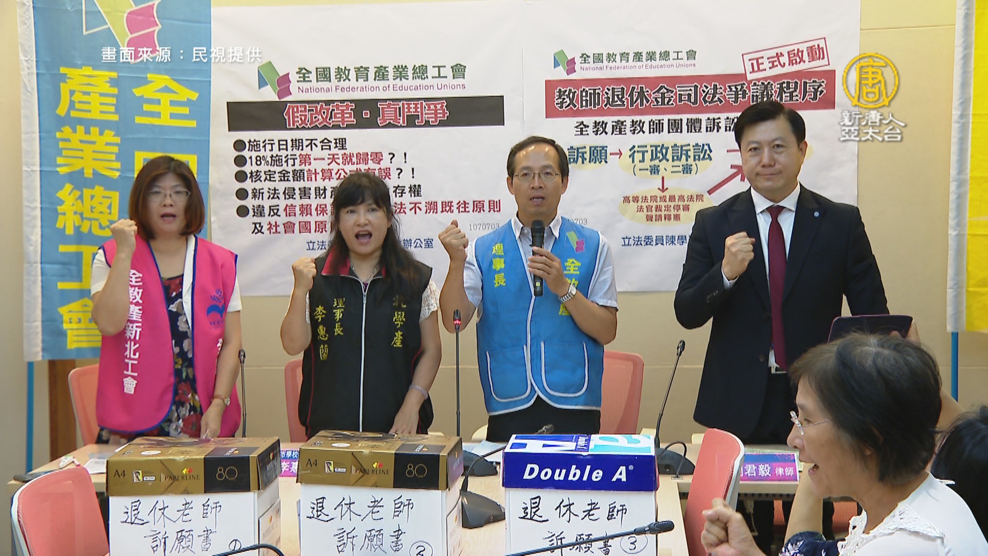 全教產理事長 黃耀南:「總共有15萬教師,還有16萬公務員收到通知書,目前所接到全教產大概有一萬名,透過我們提起爭議訴訟。」