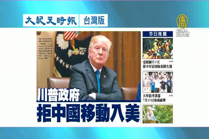 【新唐人亞太台 2018 年 07 月 04 日訊】繼續看到大紀元時報台灣版報導:美國總統川普,拒絕中國通訊商中國移動進入美國市場。