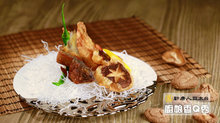 主材料:雞腿肉100g、紅蘿蔔10g、客家菜圃20g 、乾香菇3g、香菜3g、蛋20g、太白粉15g
