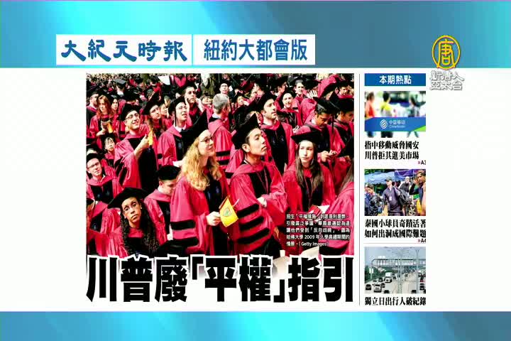 【新唐人亞太台 2018 年 07 月 05 日訊】接著看到大紀元時報紐約大都會版報導:川普廢除學校招生平權指引。
