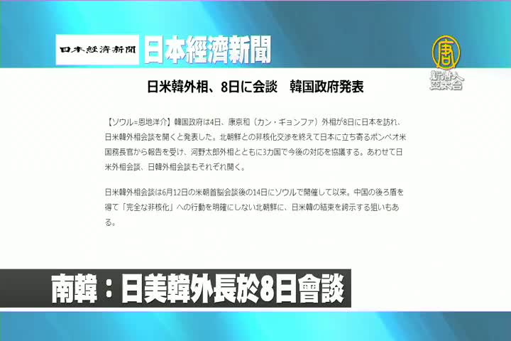 【新唐人亞太台 2018 年 07 月 05 日訊】來看到日本經濟新聞報導:南韓政府表示,日美韓外交部長將於8日進行會談。