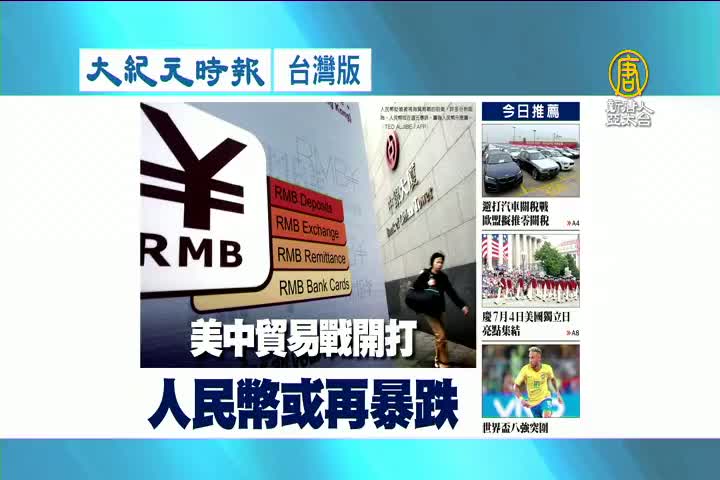 【新唐人亞太台 2018 年 07 月 06 日訊】繼續看到大紀元時報台灣版報導:美中貿易戰開打,有分析師預測,人民幣將在周五暴跌。