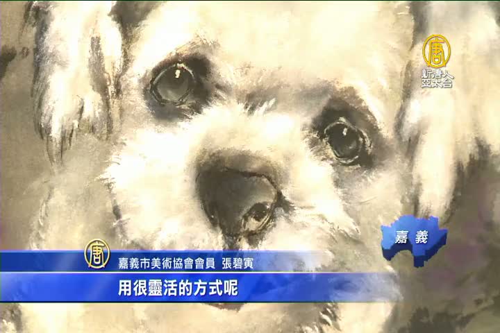 嘉義市美術協會會員 張碧寅:「走到哪兒,你都會看到這隻狗牠在盯著我們看;然後牠的毛呢,我覺得牠的毛非常的軟,所以我把牠這樣子用很靈活的方式呢去把牠表現出來。」