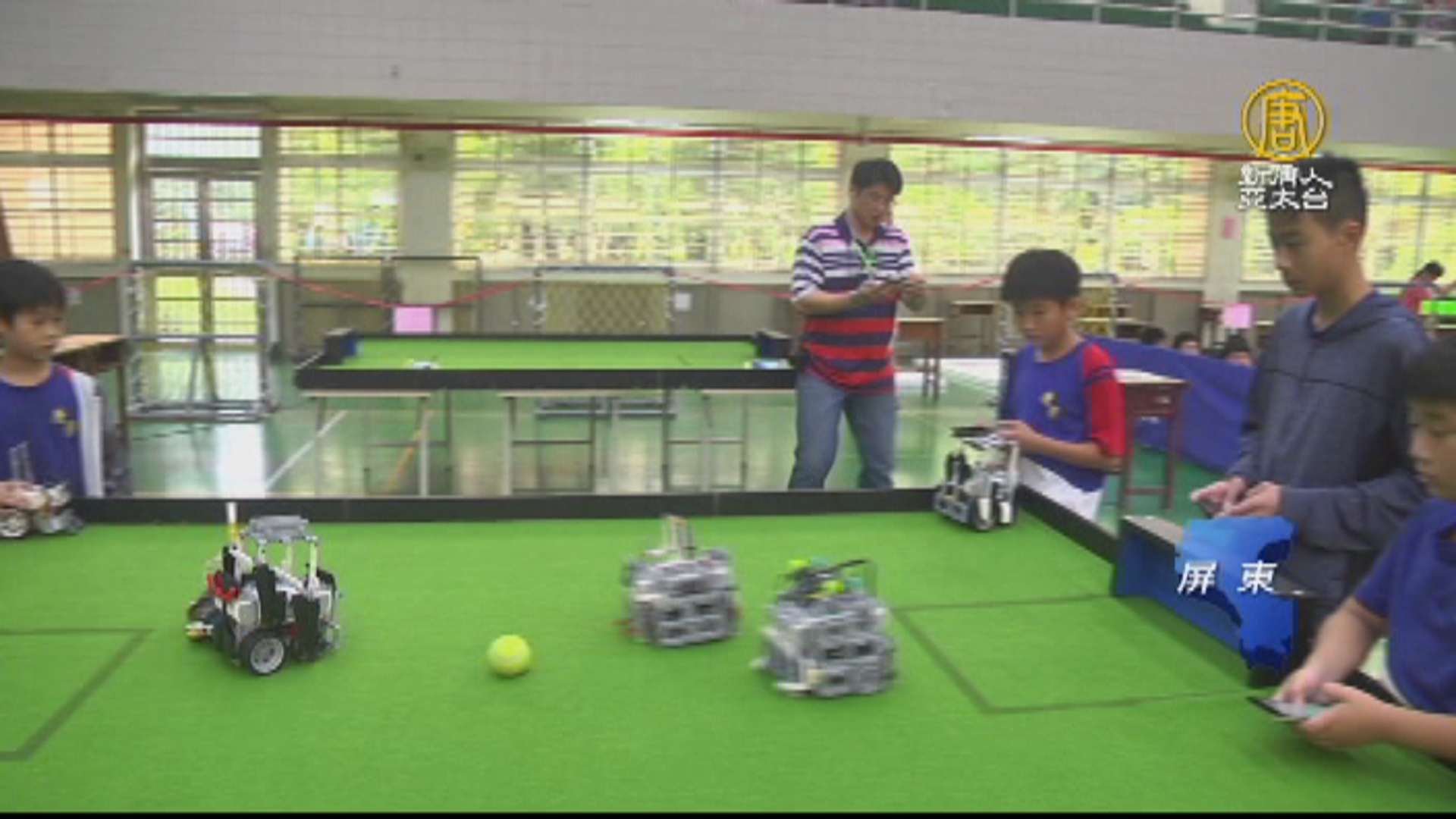 【新唐人亞太台 2018 年 07 月 09 日訊】搶搭世足賽熱潮,屏東校際盃創意機器人大賽格外火熱。比賽中一部機器人因為輪胎馬達故障,臨時拆掉一個輪子上陣,沒想到3個輪子卻更靈活,偶而還會使出「假摔」進球,讓對手難以應付,意外成為全場焦點。