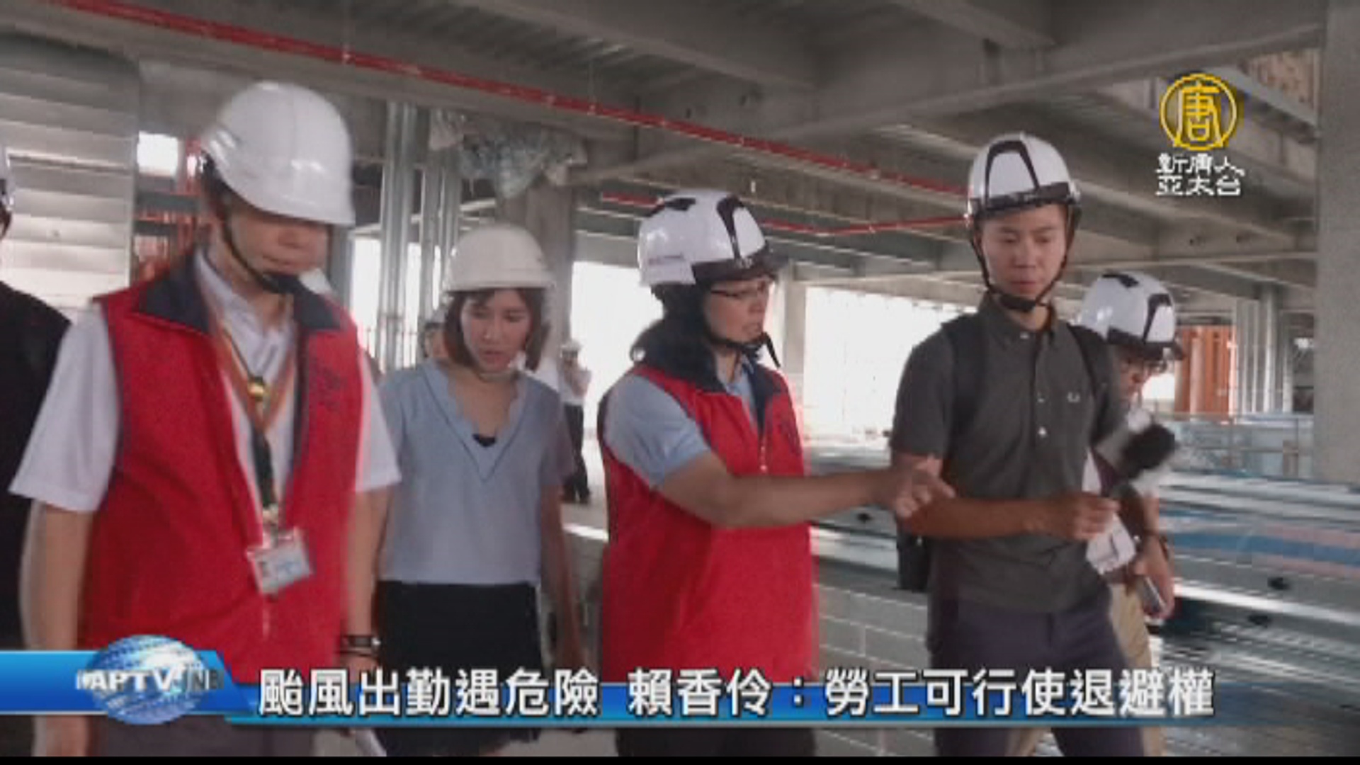 【新唐人亞太台 2018 年 07 月 10 日訊】颱風瑪利亞來襲,北市勞動局今天(10日)上午前往主要工地進行防災勞檢,針對圍籬、鷹架等設施,是否依規定加強固定,避免颱風時吹落傷及勞工與路人。而颱風期間勞工出勤如果遇到危險,勞動局長賴香伶表示,勞工可行使退避權拒絕出勤。