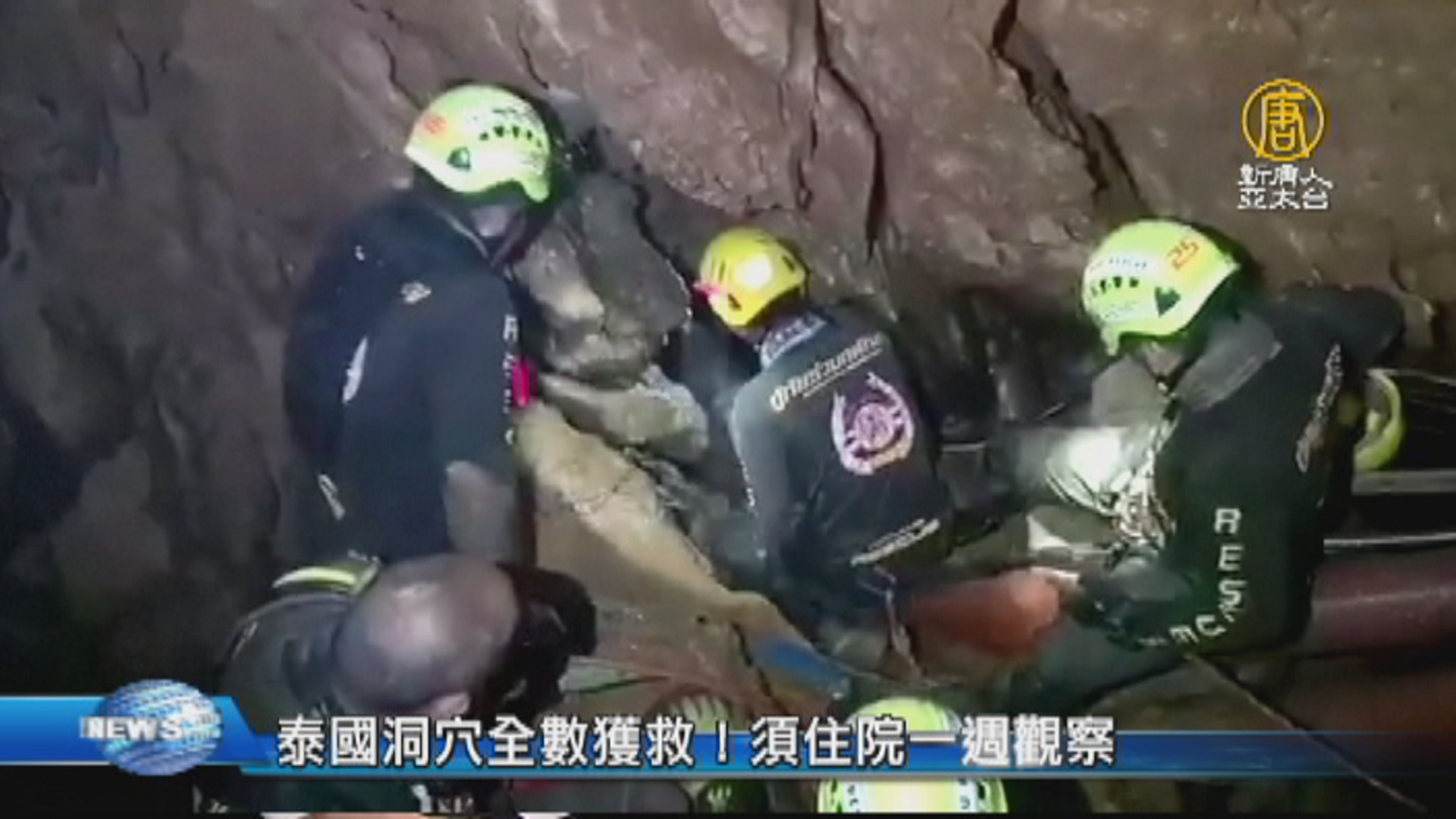【新唐人亞太台 2018 年 07 月 10 日訊】好,接著鏡頭轉到泰國。泰國睡美人洞的救援行動傳來好消息!稍早,泰國海軍海豹部隊在臉書公布,剩下的4名足球隊少年和1名教練,在稍早,已經全數離開洞穴。至今,受困的13人,全部離開洞穴。另外,泰國公共衛生部表示,前兩天獲救的八位少年,恢復狀況良好。院方表示,少年們仍須住院至少一週,進行觀察。