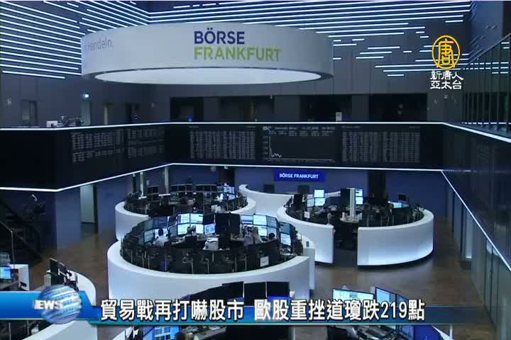 【新唐人亞太台 2018 年 07 月 12 日訊】好,美中貿易戰升溫,來看到全球股市,出現一片賣壓,應聲走跌,歐洲三大股巿收盤齊聲重挫,德國、法國和英國股市都跌超過1%。華爾街結束連續4個交易日的漲勢,半導體類股周三全面大跌,道瓊工業指數大跌219點,吐回這幾天的漲幅。