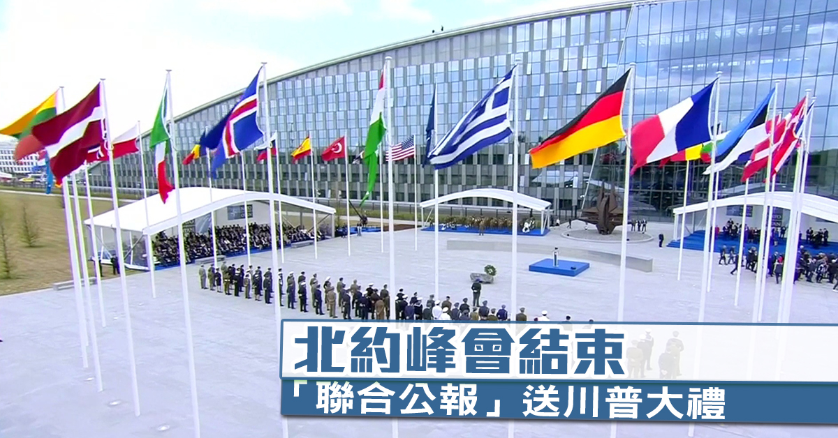 【新唐人亞太台 2018 年 07 月 13 日訊】繼續來看到,為期兩天的北約峰會週四閉幕。北約成員國一致同意兌現軍費開支佔各國GDP2%的承諾,川普總統也重申對北約的承諾不變。