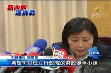 2012-02-20 21:48:51歡迎回到新聞現場。新任財政部長劉憶如首次召開記者會,宣布將成立財政健全小組,討論稅改政策項目的優先順序,並希望在9月份就可以陸續推動稅改政策。