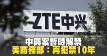 中興案暫時解禁 美商務部:再犯禁10年