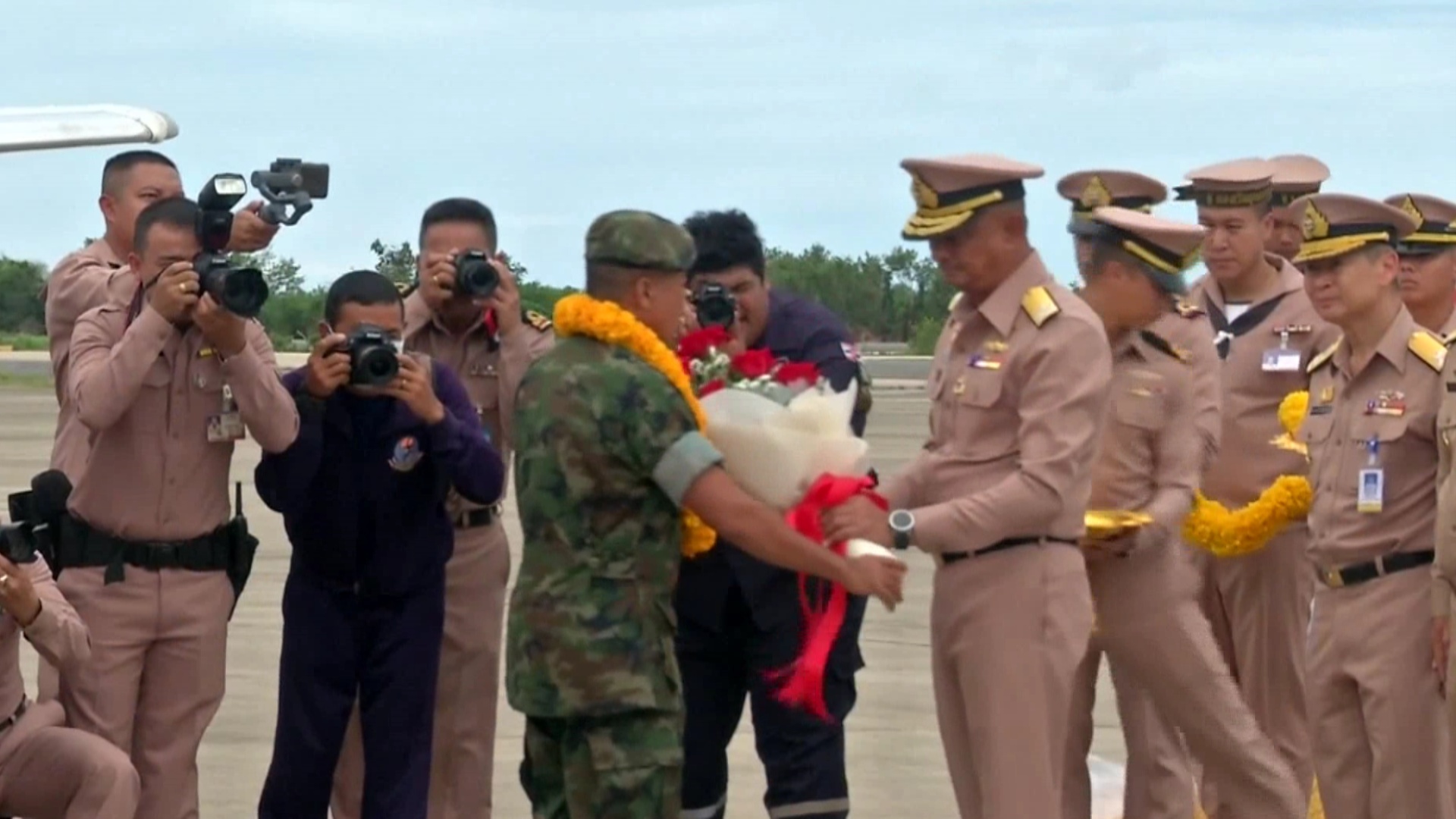 參與少年足球隊救援行動的泰國海豹部隊成員,在機場受到民?的熱烈歡迎。