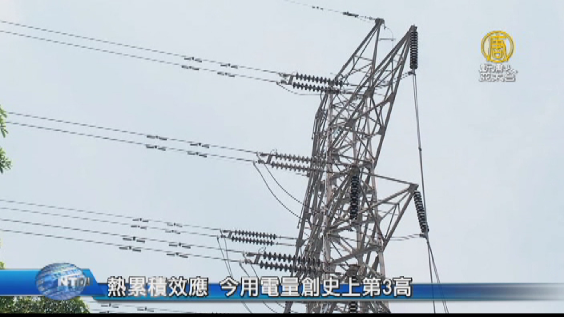 【新唐人亞太台 2018 年 07 月 18 日訊】再來看到,氣溫不斷飆高,那麼在氣溫炎熱與熱累積效應下,今年用電量,也屢創新高。根據台電統計,今天下午1點半,全台用電量接近 3640萬瓩,創下歷史上7月用電量新高,更是有史以來用電量第3高。而歷史用電量前3高,都是今年創下。不過,在基載機組足夠下,今天備轉容量率為 6.47%、備轉容量 235.9萬瓩,燈號維持「供電吃緊」黃燈。