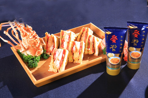 乾杯集團副料理長劉偉忠運用「愛醬」製作而成的經典辦桌料理「龍蝦三明治」。(愛醬提供)