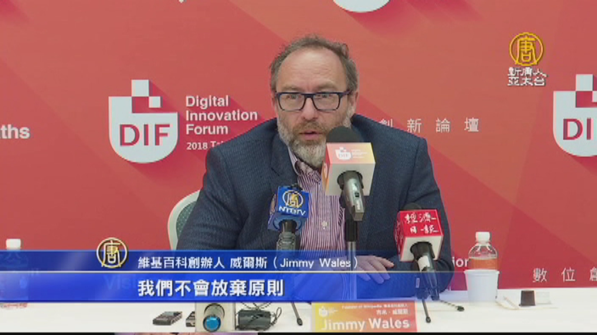 【新唐人亞太台 2018 年 07 月 19 日訊】線上免費百科全書維基百科創辦人威爾斯,來台出席論壇,他提到維基百科在中國遭到封殺,但他會堅守原則,不會為了進入中國市場而妥協。