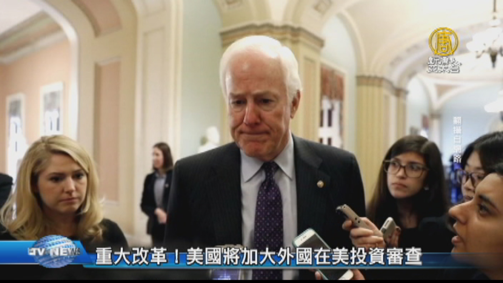 【新唐人亞太台 2018 年 07 月 20 日訊】再來看到,美國國會,將對美國外來投資審查委員會,做出十年來的重大改革!根據《華爾街日報》報導,美國參眾兩院敲定一項法案,將賦予這個機構(CFIUS)更大權限,加強對 外國在美投資,以及涉嫌對美國尖端技術海外交易的審查流程,來阻止可能危及國家安全的中國及其他外國投資交易,參議院共和黨黨鞭柯寧(John Cornyn)表示,最快這個月就能通過。白宮貿易顧問納瓦洛,也在CNBC的財經論壇上透露,國會的強烈信號,將阻止美國的高科技「被北京買到後,轉回中國」。