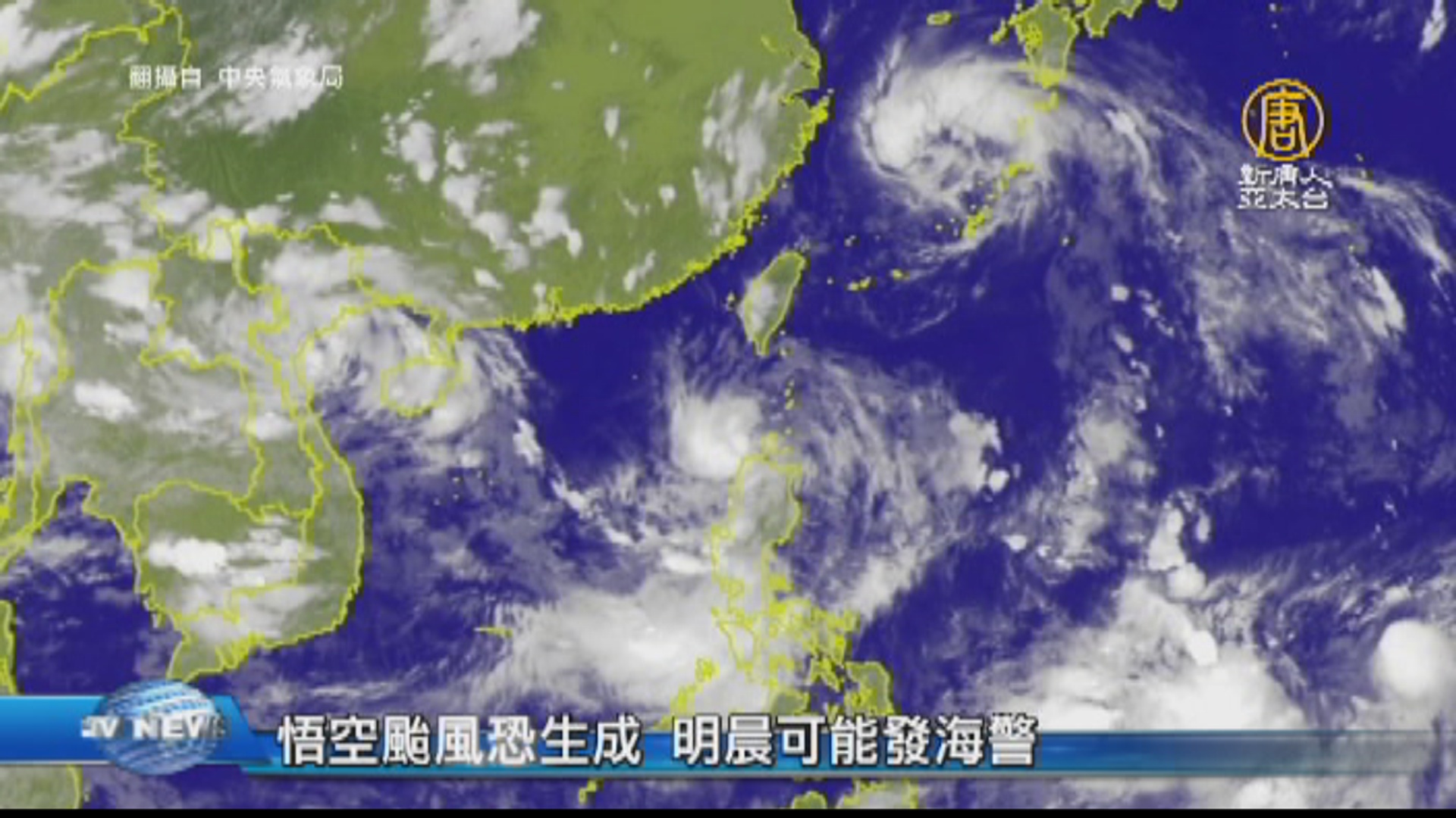 【新唐人亞太台 2018 年 07 月 21 日訊】又有颱風可能要生成了。氣象局表示,菲律賓附近有一熱帶性低氣壓,今天可能發展成第11號颱風悟空,最快可能明天清晨就會發布海上颱風警報。另外受到安比颱風的外圍環流及對流雲系發展旺盛影響,氣象局今天下午,也針對全台17縣市發布豪雨或大雨特報,明後兩天北部和東半部也將有明顯降雨,提醒觀眾朋友要特別留意。