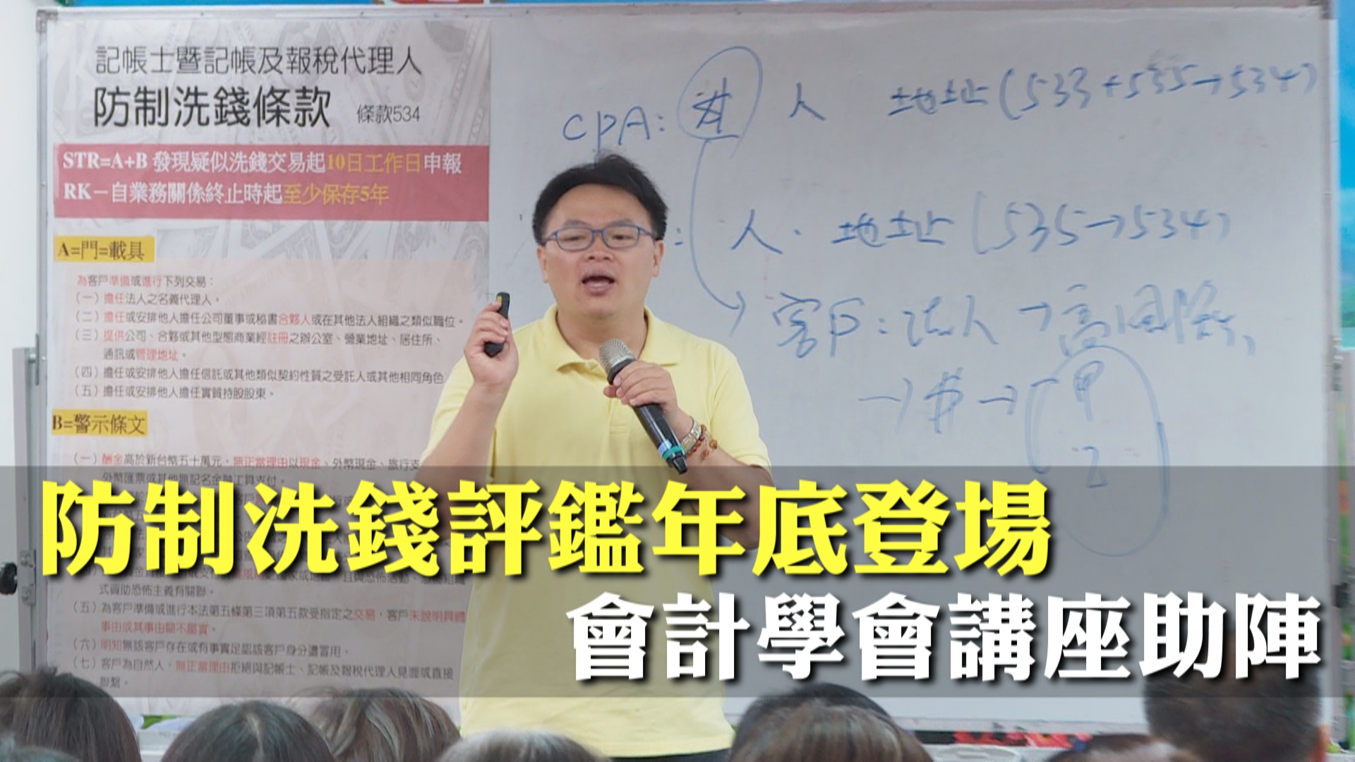 洗錢防制公益講座講師會計師 陳英志:「馬上要評鑑了,那大家都不知道該怎麼做,那又有很重的罰則,尤其又是第一年,那我們希望說評鑑是以後一段時間都會來評鑑,我們希望在第一年我們就把怎麼樣,基礎給紮穩。」