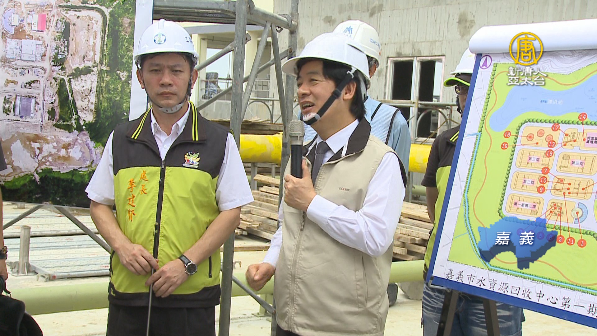 行政院長賴清德在嘉義市長涂醒哲陪同下,視察嘉義市汙水下水道建設,賴揆指出,汙水下水道建設是一個城市文明的指標,延宕15年的嘉義市第一座水資源回收中心,終於在去年4月發包,10月中處理廠將啟用,從設計到施工完畢,僅花18個月,效率相當高。