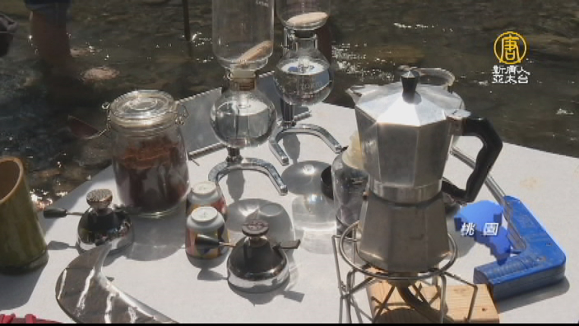 在野溪旁邊,大家專心聽著泰雅文化的點點滴滴,溪邊擺放著咖啡器具,看起來特別搶眼。這是專門為了「煮溪咖啡」而準備的器具。利用虹吸沖泡法,再拿到溪水裡面降溫,把泡好的咖啡裝到竹筒裡面再倒出來喝,香氣更加濃郁。