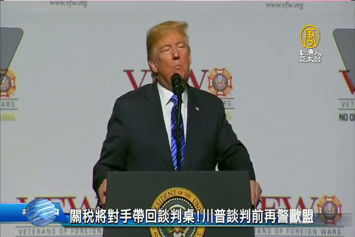 【新唐人亞太台 2018 年 07 月 25 日訊】早安新唐人,馬上帶您來看到,歐洲聯盟執行委員會主席榮科,將在美東時間今天下午13時30分,與美國總統川普會面,趕在美國祭出第二波關稅前進行協商,不過,就在與歐盟進行汽車關稅談判的前一天(24日),川普連發2則推特強調,關稅把多年來對美國採取不公平貿易的國家,逼上談判桌,這在多年前就應該發生,但 遲到總比沒有好! 川普繼續發推文說:「關稅最棒了!」認為任何一個對美國採取不公平貿易的國家,要嘛談成公平交易、要嘛受到關稅打擊,「請記住,我們是被搶劫的『存錢罐』。一切都會變好!」