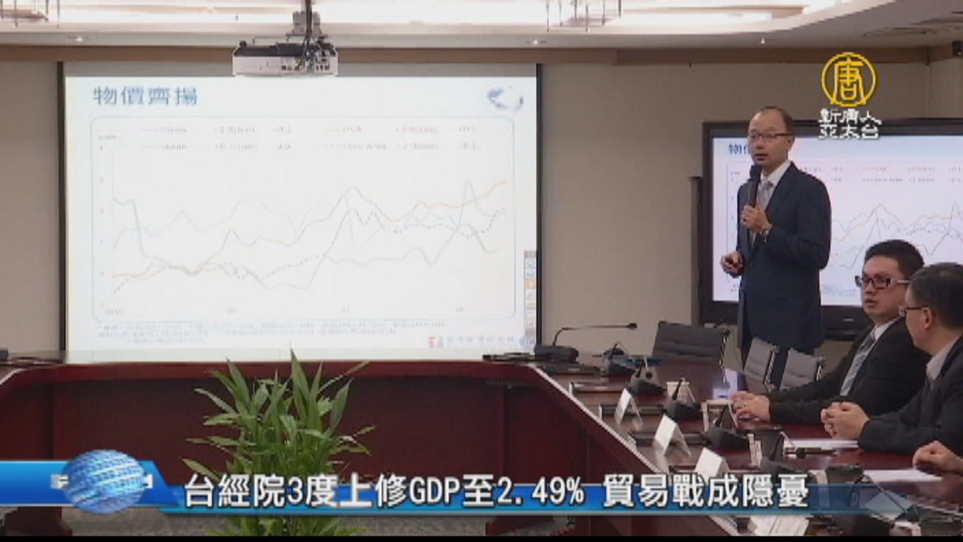 【新唐人亞太台 2018 年 07 月 25 日訊】再來看到,台灣經濟研究院,今天(25日)公布最新國內總體經濟預測暨景氣動向調查,上修今年GDP成長率預測值至2.49%,不過台經院景氣預測中心孫明德表示,未來如果美中貿易戰持續延燒,會對今年下半年甚至明年的全球經濟表現帶來風險。