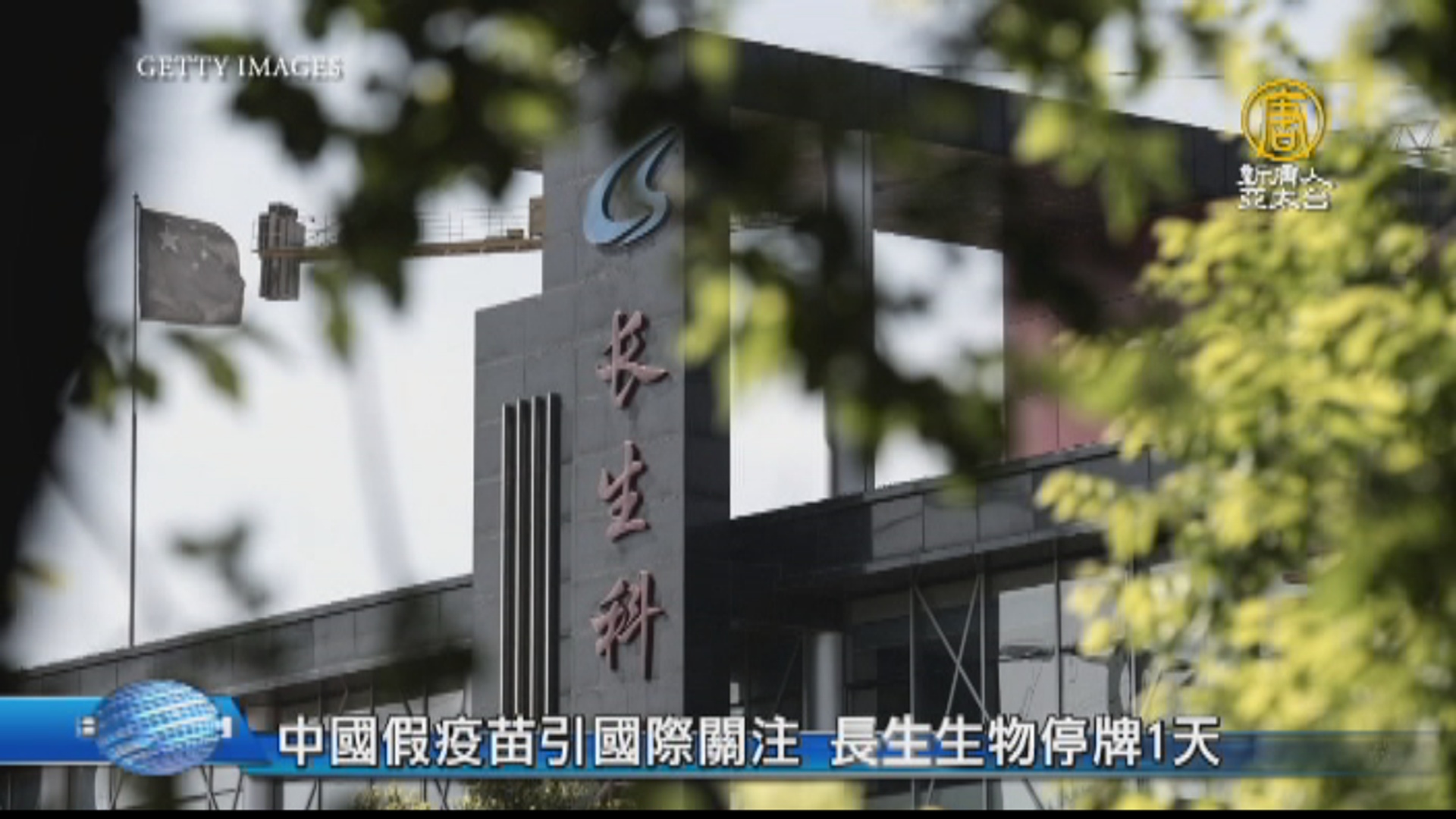 【新唐人亞太台 2018 年 07 月 25 日訊】接著來關注中國假疫苗事件。「長生生物」昨天(24號)發出公告,今天(25號)停牌1天,26日復牌,而且股票被實施其他風險警示。假疫苗事件也引起國際關注,包括美國CNN、中東半島電視台、韓國媒體都進行報導。