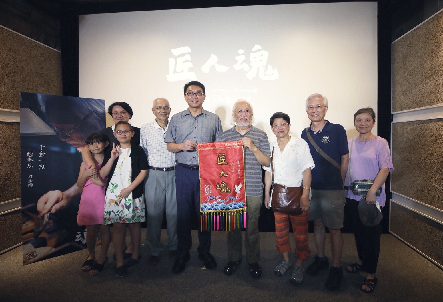 今天影片發布會由文總秘書長林錦昌、副秘書長李厚慶、副秘書長張鐵志出席,邀請本支影片主角金和貴銀樓鍾春忠師傅與家人一同觀看影片,文總也送上一面手工刺繡的「匠人魂錦旗」,向「金和貴銀樓」傳承三代逾百年的手工金匠精神致敬。