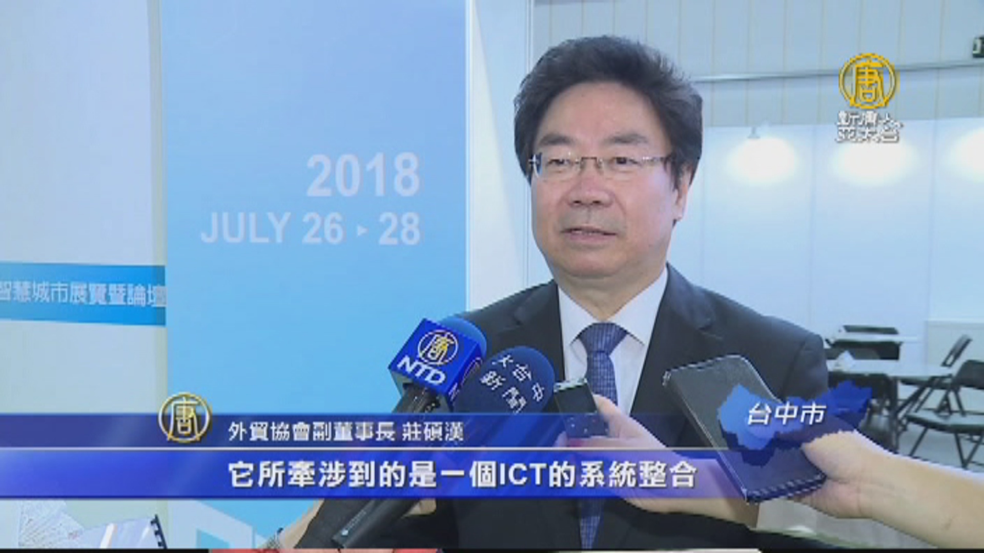 【新唐人亞太台 2018 年 07 月 26 日訊】再來看到,外貿協會主辦的智慧城市展,今年首度在台中舉辦,共有41家國內外廠商參展,展出智慧長照、智慧建築等主題,吸引300位國外買主參與。