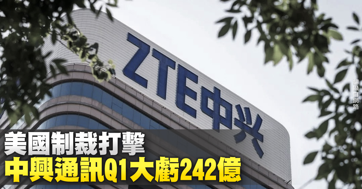 中國電信設備商中興通訊,因違反美國出口禁運遭重罰10億美元,27日更新首季財報,受提列美國罰金的衝擊,由盈轉虧。讓原本獲利16.87億人民幣轉為大虧損54.07億人民幣,約242億台幣。
