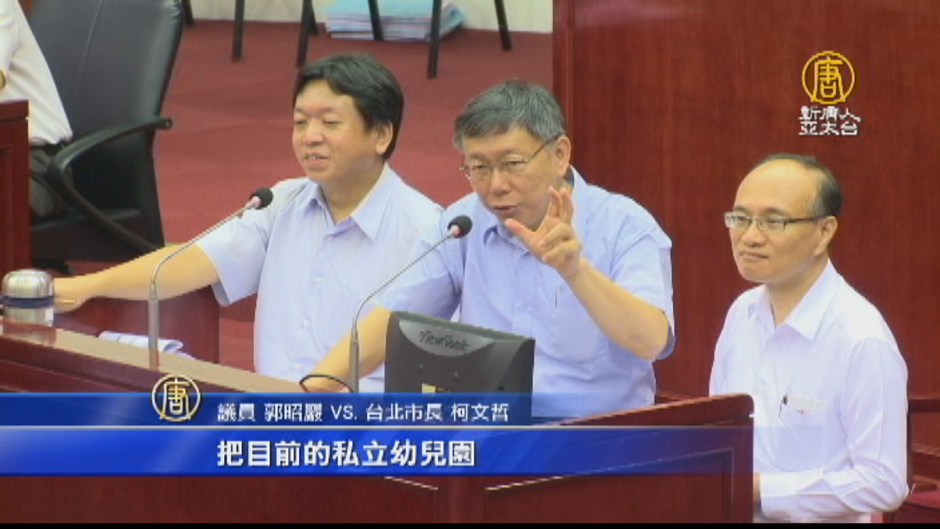 議員 郭昭巖 VS. 台北市長 柯文哲:「你要把私幼變成非營利幼兒園,沒那麼容易的一件事。其實你家是開幼稚園應該很有經驗,我覺得是這樣,把目前的私立幼兒園,要直接轉成非營利有困難,所以應該要有台北版。」柯文哲表示,針對育兒政策上路,北市府的原則是,原來的補助額度不縮水,不增加家長托育的自付金額,不論中央怎麼處理,若連任福利不會比現在少,目前還在跟中央討論。