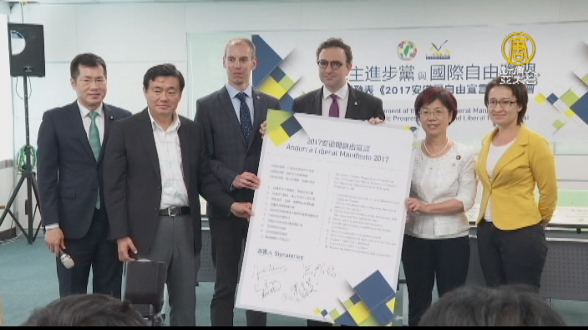 【新唐人亞太台 2018 年 07 月 30 日訊】再來看到,國際自由聯盟 27日與民進黨共同發布「2017安道爾自由宣言」中文版,民進黨立委強調,這象徵民進黨與國際社會,一起捍衛民主自由價值,遏止中共霸權輸出。