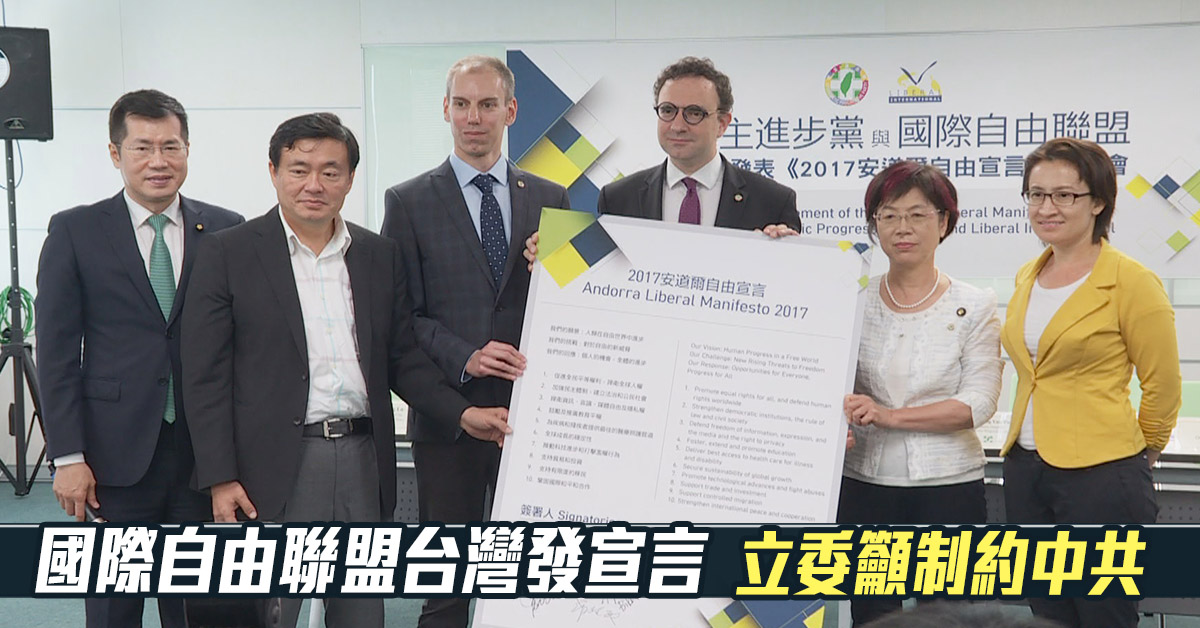 2018-07-30 18:15:43再來看到,國際自由聯盟 27日與民進黨共同發布「2017安道爾自由宣言」中文版,民進黨立委強調,這象徵民進黨與國際社會,一起捍衛民主自由價值,遏止中共霸權輸出。