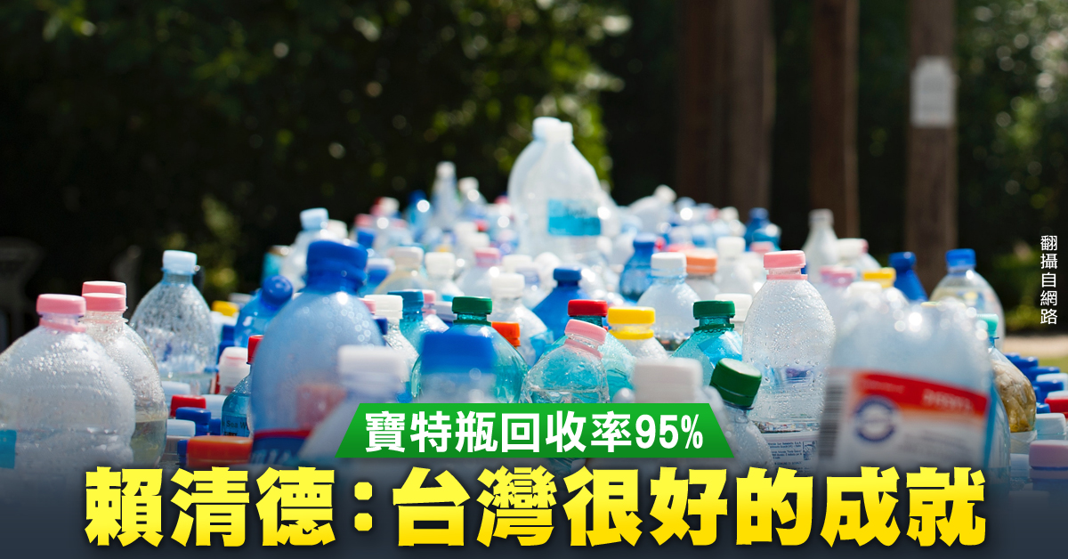 行政院長 賴清德:「在台灣的寶特瓶的回收,可以達到百分之九十五,甚至外國也有整個國家的寶特瓶,會送到台灣來,由台灣來協助他們解決,這個就是一個很好的成就。」