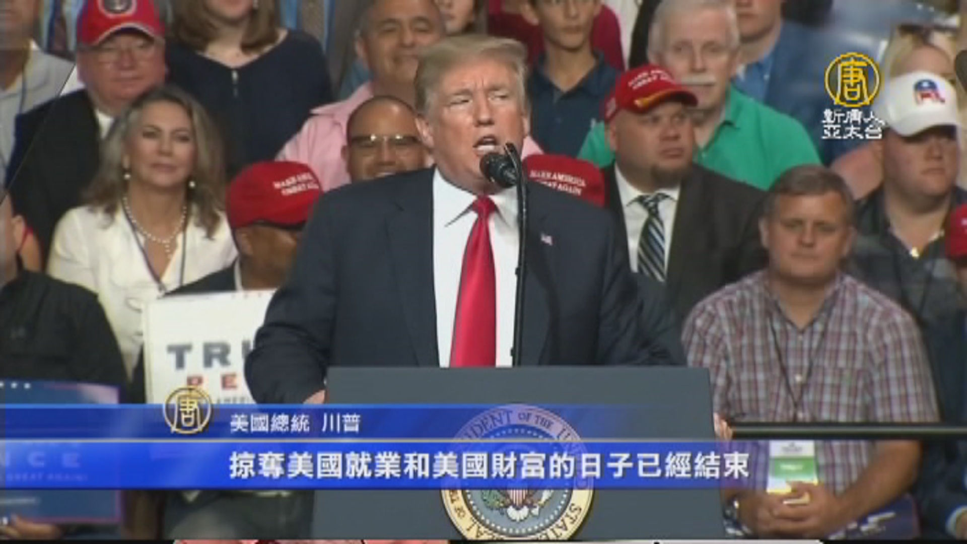 【新唐人亞太台 2018 年 08 月 02 日訊】好,再來看到,本週二,美國總統川普,在佛州舉行集會,為兩位共和黨人拉票,同時也捍衛自己的貿易政策,川普強調:「掠奪美國就業和美國財富的日子」,結束了。